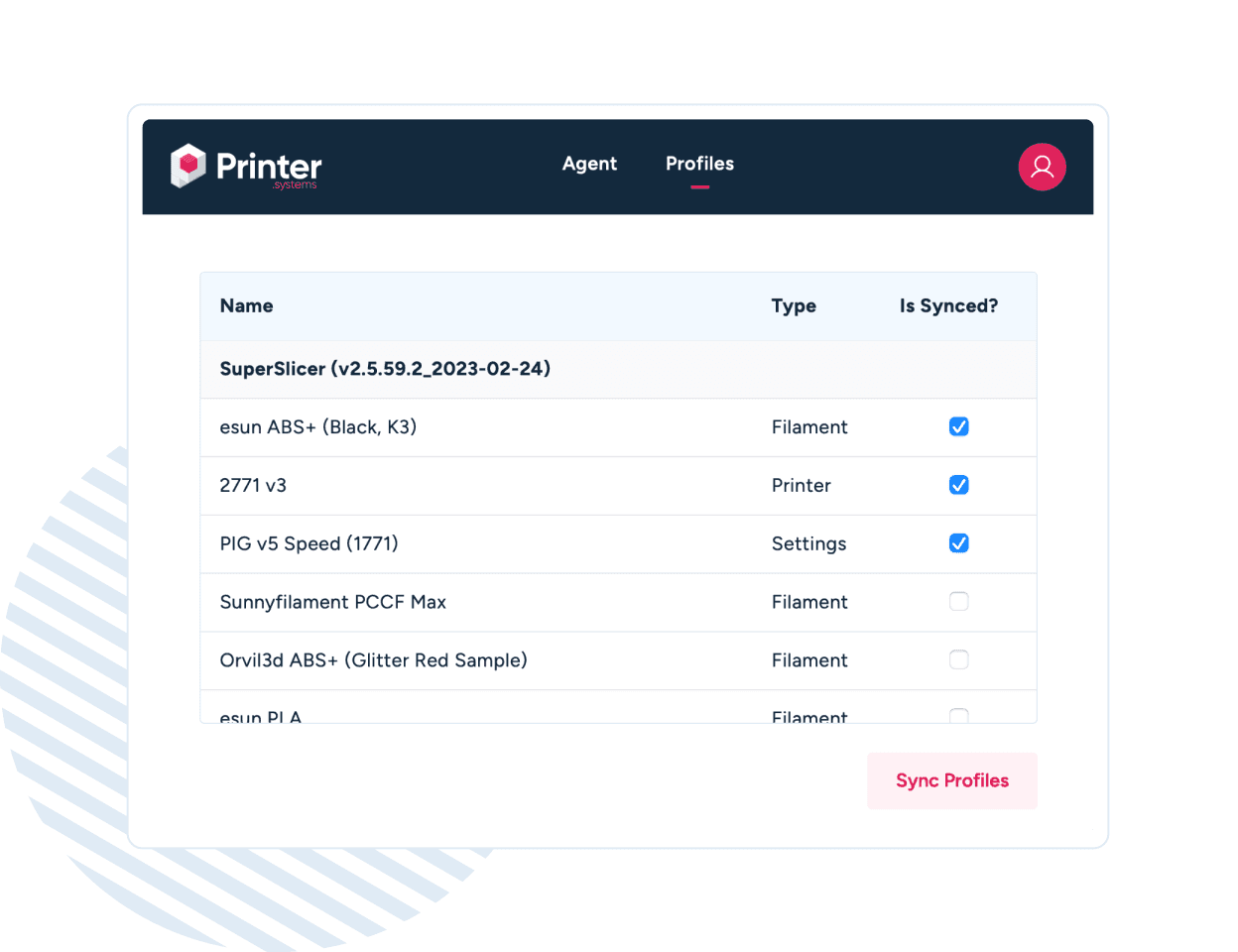 aintain consistency across all your print jobs with cloud-synced slicing profiles. Update and manage your profiles effortlessly on Printer.Systems, ensuring high-quality prints every time, regardless of where you're printing from.